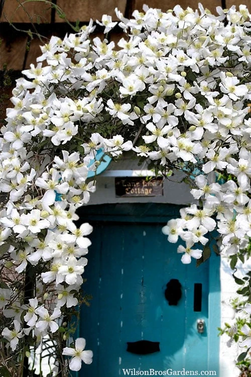 Climbing 20 to 35 feet in height and equally as wide, the Grandiflora Montana Clematis is ideal for growing on arbors, pergolas, fences, large trellises, arches, tall obelisks, poles, lamp posts and other structures. A fine addition to Clematis gardens, fragrance gardens, and white theme gardens.